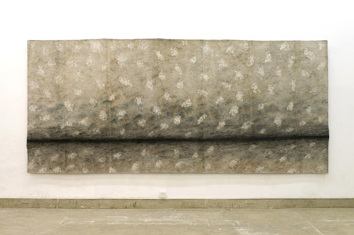 李鎮(zhèn)雨,《無(wú)題(Untitled)》,210x376cm,韓紙混合物、亞麻布,2009