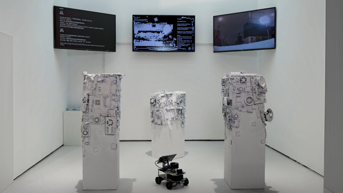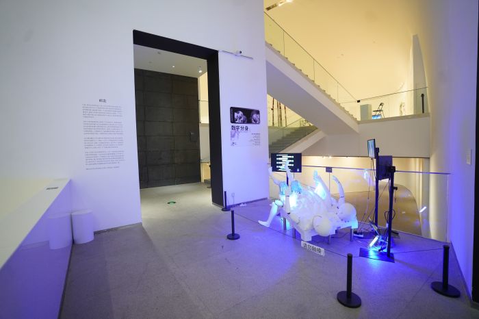 本次展覽共展出5件青年藝術(shù)家的作品,表達在數(shù)字科技的環(huán)繞影響之下,嶄新一代對人工智能身份和人類自我核心的認知,沿著人工智能初步誕生、自主學(xué)習(xí)、自我進化的發(fā)展脈絡(luò),以人與數(shù)字人的關(guān)系為出發(fā)點,以人類未來發(fā)展為中心議題,尋求“人”平衡自我認知的途徑。