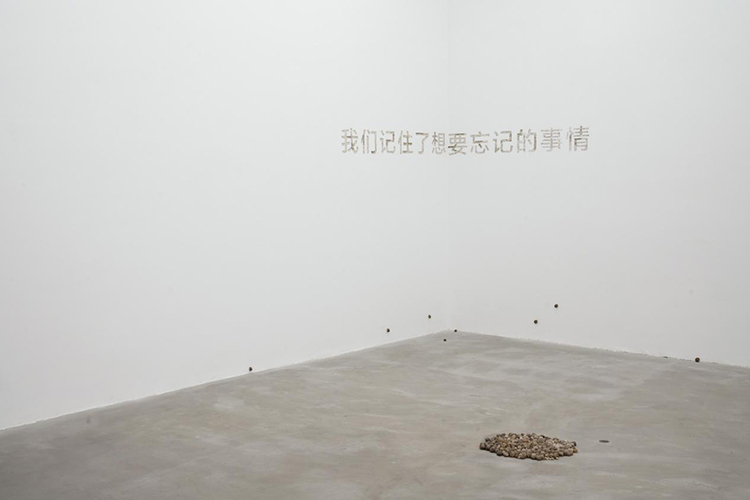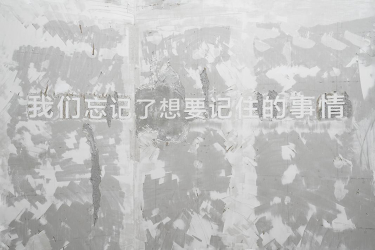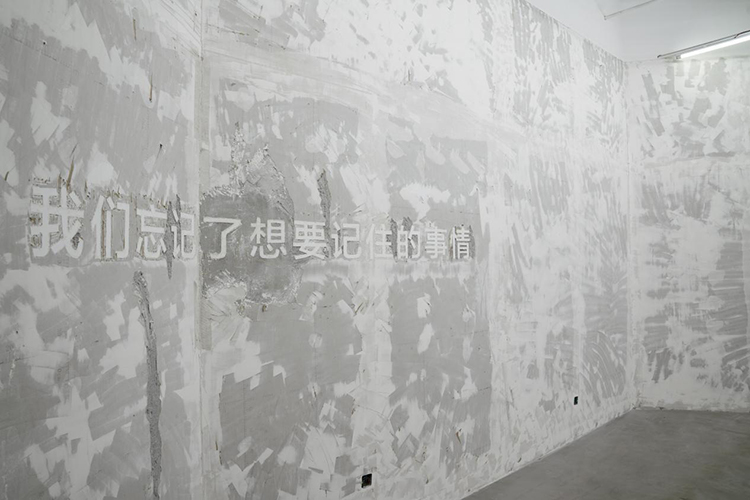 In the exhibition hall, the artist chiseled off the plaster on one wall to leave the words "We forget what we want to remember"and carved out the words "We remember what we want to forget" on another. Here, the "remembering" and "forgetting" become accidental and uncontrollable, suggesting that the more we want to achieve, the more backfire we may often get.