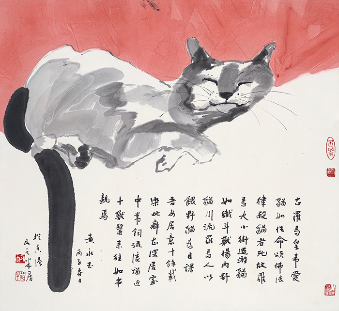 羅馬貓 黃永玉 紙本水墨設(shè)色 97cm×89cm 1996年(圖片來源:清華大學(xué)藝術(shù)博物館)