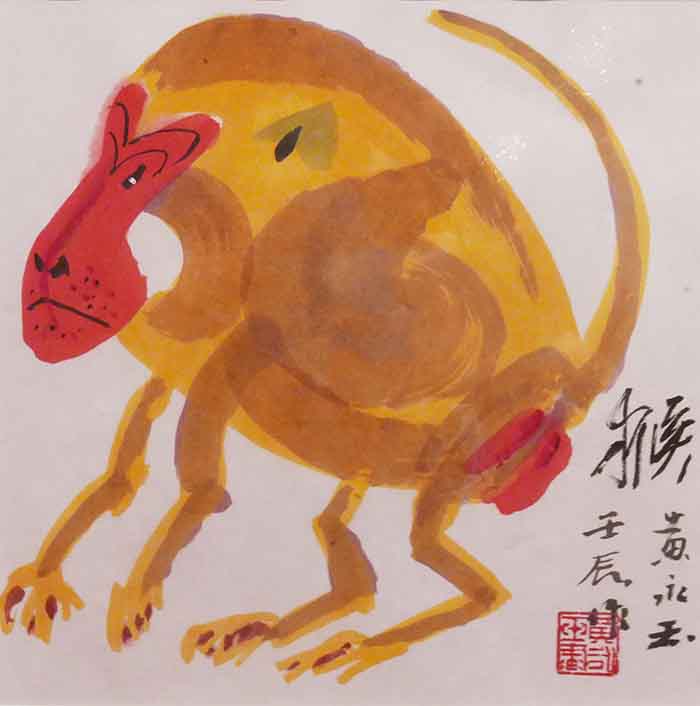 十二生肖(繪畫12件)猴 黃永玉 紙本水墨設(shè)色 34cm×34cm 2012年