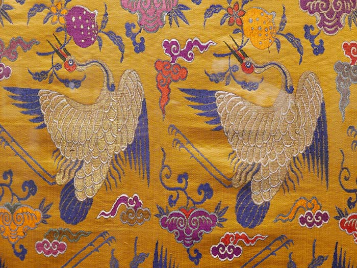 駝黃色地云鶴花果紋妝花緞匹料 244cm×76cm 清