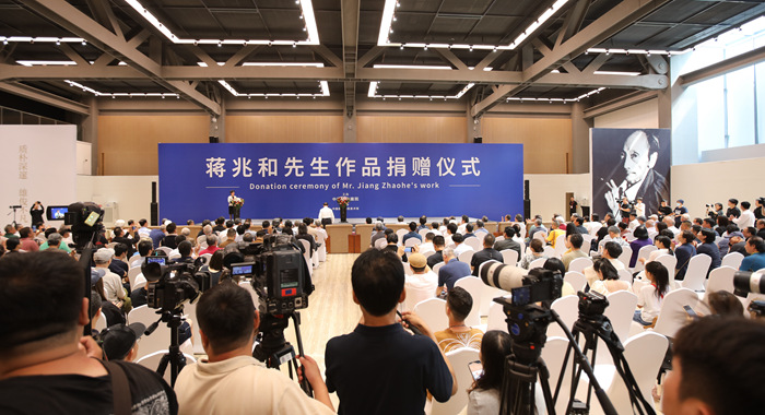 參加此次捐贈儀式的藝術(shù)界嘉賓200余人。其中,蔣兆和家屬代表有蔣代梅、蔣代明、毛志松、蔣一輝,各機構(gòu)單位代表有王寧、高樹勛、呂章申、連輯、張建星、馮遠(yuǎn)、楊承志、王明明、潘魯生、何亞文、楊曉陽、盧禹舜、燕東升、劉萬鳴、安遠(yuǎn)遠(yuǎn)、趙東、程大利、田黎明、何家英、李象群、賈廣健、申萬勝、殷福、唐勇力、葉青、李明、李存友、馬克、楊京島、王平、譚平、徐漣、王青云、張曉凌、張江舟、趙衛(wèi)、曾來德、紀(jì)連彬、于文江、吳洪亮、寇疆暉、胡偉、唐輝、馬振聲、劉曦林、張立新、董浩珉、于小瀛等,還有李寶林、張立辰、石齊、謝志高、李延聲、李燕、孫燕華、龔文楨、王天勝、蔡玉水、李庚、趙建成、胡抗美、王鏞、陳醉、徐建華、陳傳席等老藝術(shù)家代表,袁武、夏荷生、李洋、于洋、王海濱、許俊、李一、牛克誠、鄭工、江宏偉、潘纓、常朝暉、劉明波、莫曉松、米潔、潘選民、紀(jì)清遠(yuǎn)、盧平、姚鳴京、于光華、秦建平、楊晶、石磊、楊麗勇、蔣威、楊軍、石峰、鄭艷、晁岱雙、崔東湑、王東輝、王勇、夏蒙、石巖、邵莉、魏迪、陳輝、林若熹、劉波、尹毅、曾三凱、劉彥水、熊紅鋼、曹建華、鄧遠(yuǎn)坡、桑火堯、蔡葵、崔進(jìn)、李傳真、王德芳、唐建、任保忠、宋彥軍、劉俐蘊、蘇睿、王赫赫、丁鼎、盧虓、劉少寧、王振、韓昊、李寧、凌晨、姜滿、舒光強、張廣、方放、朱培爾、高軍法、尹成君、葉正華、張弓、趙志田、王茜、李福順、周午生、張繼剛、馬新林、張公者、龍開勝、王學(xué)嶺、張劍、高宇、徐小陽、李蓉、彥風(fēng)、王加、蔡宜恒、石磊、陳智勇、劉溯、楊凡、董令時、陶濤、韓小飛、曹俊、王小燕、錢曉鳴、楊昆、程茂全、王維、吳延佳、吳欣還、蔣祖龍、李藝華、張領(lǐng)娜、毛譽鈞、李旭會、陳瑩、李桂蘭、蔣元宸、惲小剛、鄧冶平、臧伯良、姚寶澤、靳東方、肖麗、萬寧、孫丙寅、呂瑞華、王洪霞、王洪杰、江布克、周成楠、王丞、兆學(xué)軍、李生輝、紀(jì)衛(wèi)坡、武小猛、齊鳴、樓玉舟、趙奇、邢少臣、梁占巖、李愛國、王永亮、高天民、范揚、潘金玲、王輔民、陳鵬、魏杰、王厚祥、王藝、陳風(fēng)新、何加林、董雷、袁學(xué)軍、李虹霖、劉博涵、吳濤、邱雷、張楠、任明輝、方向、李曉柱、魏廣君、陳明、趙培智、沙永匯、鄧柯、劉德峰、金新、吳笛、王銳光、常欣、杜浩、王躍奎、謝小銓、程興林、洪厚甜、陶宏、玄明加、張苑、馮知軍、馬子雷、陳散吟、郭子良、王瑛、徐冬青、王東聲、申卉芪、黨震、宛少軍、王治、任軍偉、駱雪、王聰叢、劉立宇、唐朝軼、趙際芳、任賽、邱琳、張哲宇、康雷、付振寶、梅躍輝等美術(shù)界同仁。