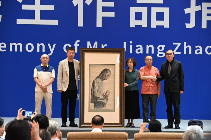 7月22日上午,“蔣兆和先生作品捐贈儀式”在中國國家畫院國風(fēng)堂(明德樓一層)舉辦,正式拉開中國國家畫院“現(xiàn)代中國書畫大師系列展”的序幕。蔣兆和先生是中國現(xiàn)代人物畫大家和美術(shù)教育家,以魯迅筆下的人物阿Q創(chuàng)作的《與阿Q像》是其代表作之一,也是中國水墨人物畫的經(jīng)典之作。蔣兆和先生家屬以崇高的社會責(zé)任感將該作無償捐贈給中國國家畫院,同時捐贈的還有蔣兆和先生的文房用品等共18件/套,此次捐贈是對中國國家畫院收藏的極大貢獻(xiàn)。