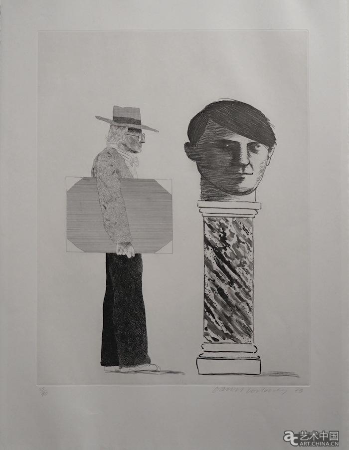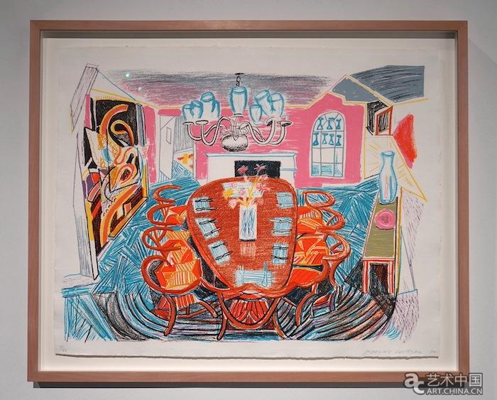畢加索是霍克尼一生中摯愛的藝術(shù)家之一,雖未曾謀面,但一直被霍克尼當(dāng)作導(dǎo)師。1973年,霍克尼與阿爾多·克羅默蘭克合作,創(chuàng)作了一幅名為《崇敬畢加索的學(xué)生》版畫,畫中霍克尼身穿喇叭褲,夾著畫板,站在一尊畢加索的胸像旁,也在本次展覽中展出。在霍克尼移動(dòng)的焦點(diǎn)中不難發(fā)現(xiàn)畢加索的影子,突破傳統(tǒng)的單點(diǎn)透視,在同一畫面中匯聚多種視角。