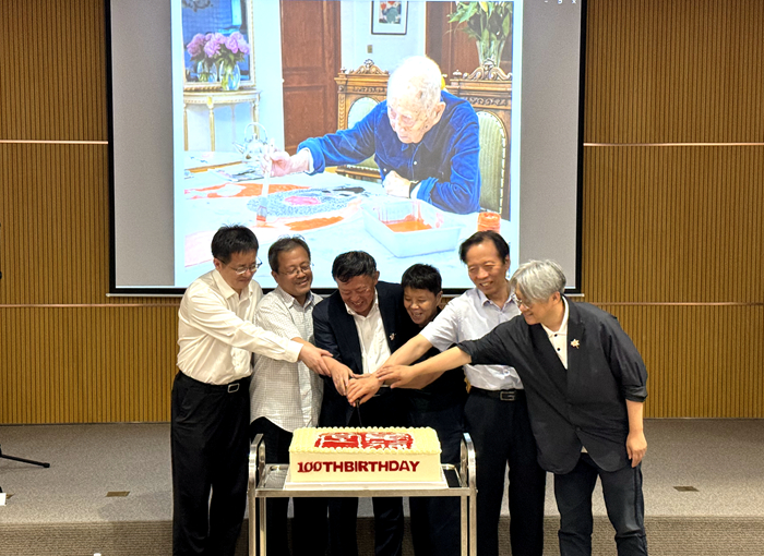 黃永玉先生家屬代表與嘉賓們一起切蛋糕,宣布“新作展”巡展起航