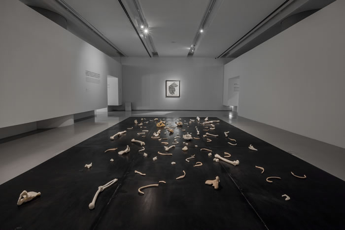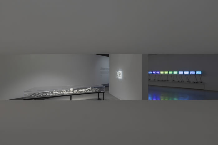 展廳現(xiàn)場,《器官與骨頭》和《X?》的空間并置(拍攝:楊灝)