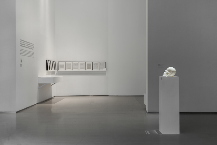 出口處,依舊是兩扇素色的簾布——和進(jìn)入展廳時一樣,再一次讓人聯(lián)想到醫(yī)院手術(shù)室的隔離簾。它們將張培力的四十年回顧展懸置隔絕于沉浸在泰康美術(shù)館成立一周年派對的空間之外。觀眾對身體的每一個肢解部分的凝視創(chuàng)造了對肉身的新的認(rèn)知,此身若缽體,缽體之間的不同恰若社會語境下被冠以的“身份”編碼:是數(shù)量比例、是基因圖譜、是儀器中的起伏波動、是姓名代碼、是護(hù)照和蓋戳,也是身份證的編號……在同一個編碼序列的社會體系里,個體有何不同?2011.4.27—長期,是一段開放式的自由命題,還是一個時間線軸上限定式的嘲笑——就如同所有的影像與劇目終將落幕,“長期”將冷峻與沉默留給觀者。