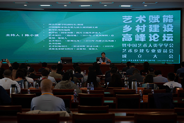 2024年9月22日,藝術(shù)賦能鄉(xiāng)村建設(shè)高峰論壇暨中國藝術(shù)人類學(xué)學(xué)會(huì)藝術(shù)鄉(xiāng)建專業(yè)委員會(huì)成立大會(huì)在北京成功召開。文化和旅游部原副部長項(xiàng)兆倫、中央文化和旅游管理干部學(xué)院黨委書記喻劍南、中國社會(huì)科學(xué)院民族學(xué)研究所所長王延中、中央美術(shù)學(xué)院副院長呂品晶、四川美術(shù)學(xué)院院長焦興濤,中央民族大學(xué)原副校長,教育部“長江學(xué)者”特聘教授麻國慶以及來自全國92所高校的專家、學(xué)者和相關(guān)單位代表出席此次成立大會(huì)。會(huì)議開幕式由中央文化和旅游管理干部學(xué)院黨委書記喻劍南主持,成立大會(huì)由線下和線上同步進(jìn)行。