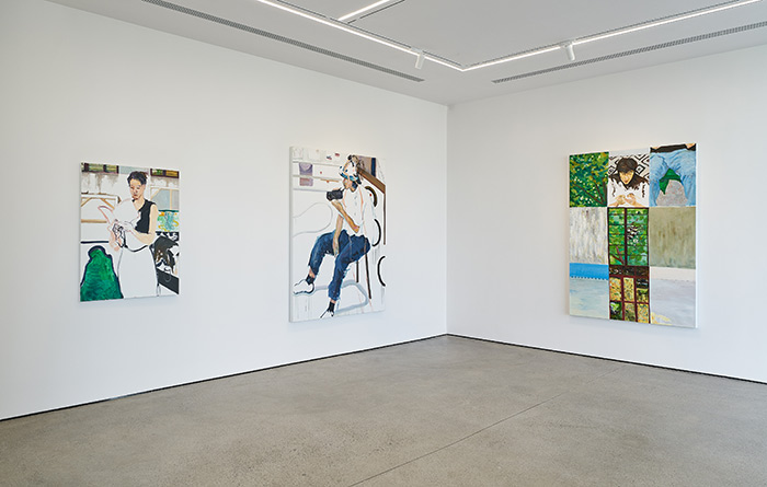 鄭皓中的作品始終聚焦于與自身生活相關(guān)的人物與環(huán)境,而這些日常視野內(nèi)的景觀幾乎都來源于他的畫室空間。盡管近年來藝術(shù)家工作室聚落逐漸遷移、分散甚至消失,他的畫室里卻常有包括藝術(shù)家、音樂人、寫作者在內(nèi)的好友到訪。這些朋友是他的模特,而同時他也是對方創(chuàng)作中的演員、攝像師或樂手。在以熟悉的朋友為繪畫對象時,信任與默契讓他能夠忽略人物身份,專注于場景和(反)敘事構(gòu)建,從而自由地在畫布上打開映照自我的開放式心理圖景。