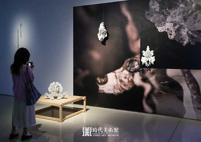 你也許會(huì)被跨越時(shí)空的生命所震撼:曹舒怡的3D打印樹脂雕塑《潛含親緣》呈現(xiàn)了跨越時(shí)空與生命形式的蛻變——無(wú)脊椎動(dòng)物的逆行蛻變、由微生物粘液組成的鐘乳石、產(chǎn)在粘液石中的昆蟲卵、多物種共生真菌及其代謝產(chǎn)物。藝術(shù)家提出了一種人類中心主義以外的邏輯去認(rèn)知我們的星球。