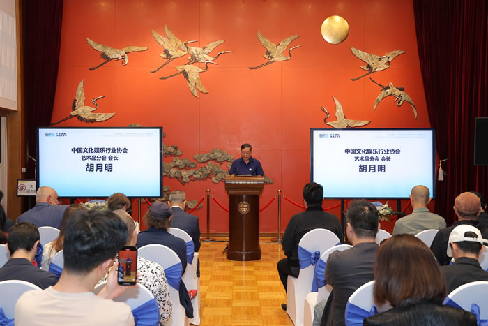 中國文化娛樂行業(yè)協(xié)會藝術(shù)品分會會長胡月明致辭