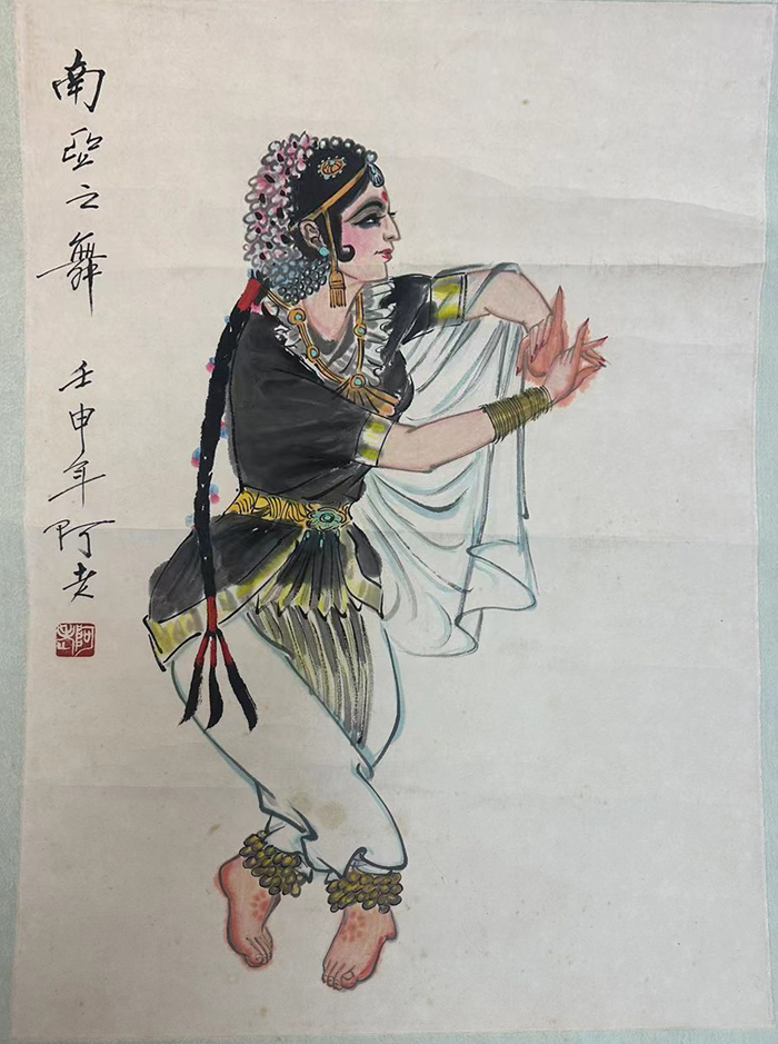 阿老 《南亞之舞》 中國畫 紙本設(shè)色 67x44cm 1992