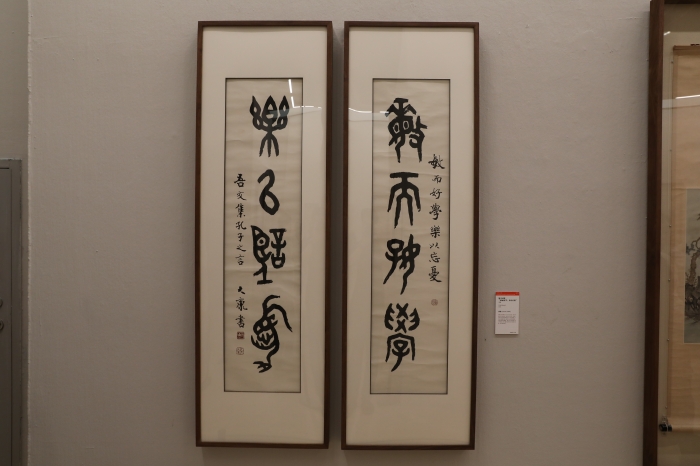 康殷 篆書“敏而好學(xué),樂以忘憂”對聯(lián) 書法 130x30cmx2