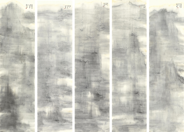 查律《朝夕唯新五條屏》200cm×53cm×5宣紙水墨 2024年