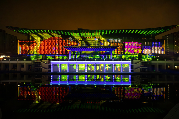 “雄安商務服務中心”是雄安新區(qū)城市會客廳,外部造型傳承漢唐經(jīng)典,氣質(zhì)雄渾穩(wěn)重,展現(xiàn)出“中西合璧、以中為主、古今交融"的建筑風貌;內(nèi)部空間融匯地域非遺文化,集萃現(xiàn)代東方美學,打造極致藝術(shù)殿堂。此次大型光影項目的落成,將極大提升雄安新區(qū)的文化內(nèi)涵與藝術(shù)價值,形成夜經(jīng)濟亮點IP,打造一張亮麗的雄安城市名片,賦能雄安文商旅融合發(fā)展。