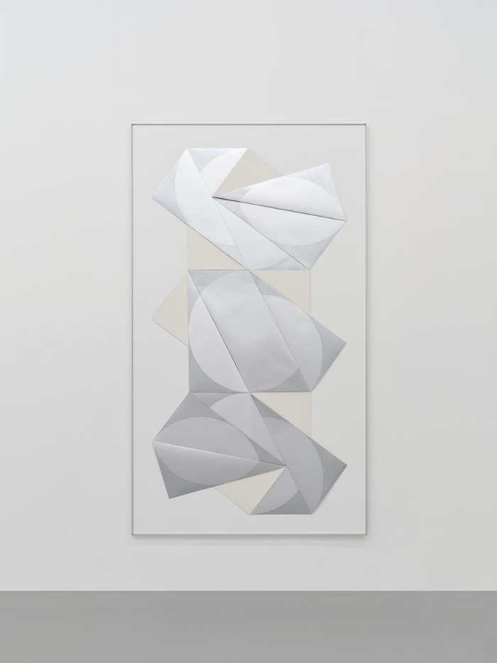 廖斐,《局部被遮蔽的圓 4》,2022,啞銀卡紙上油漆筆著色,250 × 143 cm。