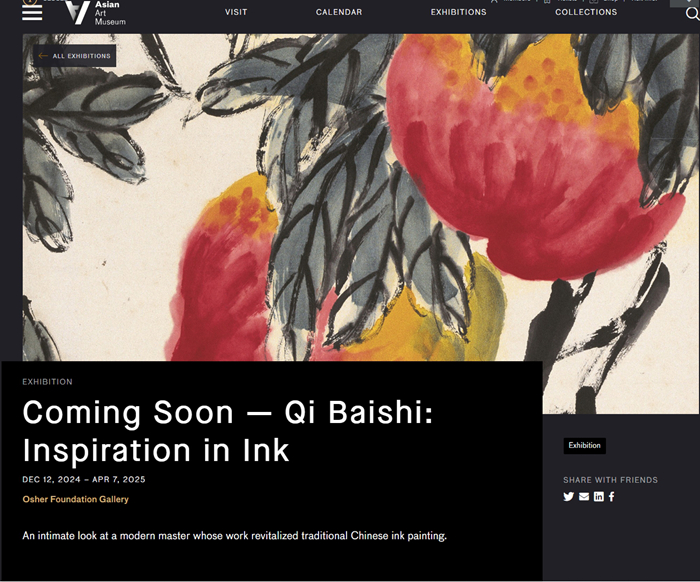 舊金山亞洲藝術(shù)館官網(wǎng)“不肯作神仙——齊白石的水墨靈韻”展覽預(yù)告