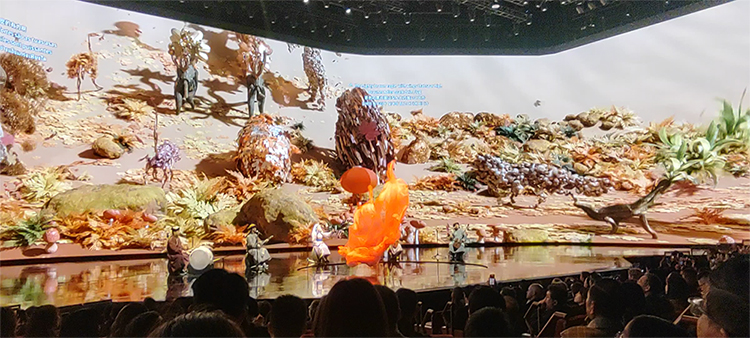 “舞美設(shè)計不能只停留在裝飾層面,它必須有自己的‘語言’?!痹诳偨Y(jié)《澳門2049》隱藏式舞臺創(chuàng)作經(jīng)歷時,趙曉宇這樣強調(diào)。“就像莊子說的‘天地有大美而不言’,張藝謀導演的這臺新作給了我一個啟示:不必執(zhí)著于堆砌華麗的實體布景,有時‘隱’的智慧反而能創(chuàng)造出更震撼的藝術(shù)效果。當舞臺能夠在‘顯’與‘隱’之間自如轉(zhuǎn)換,我們就找到了一種全新的適合中國文化的舞臺美術(shù)語言——深刻理解每種非遺藝術(shù)特質(zhì)的基礎(chǔ)上,通過現(xiàn)代科技手段強化其藝術(shù)表現(xiàn)力。