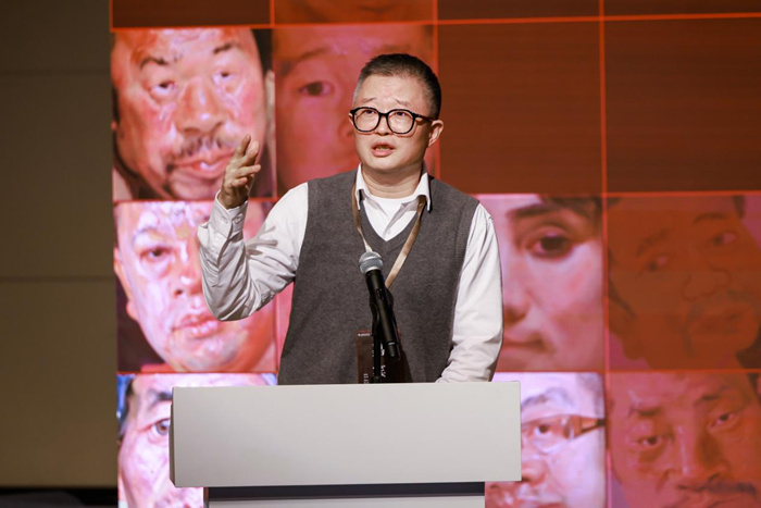 忻東旺夫人、聯(lián)合策展人張宏芳女士表達(dá)了對所有支持和珍惜忻東旺藝術(shù)的人的深切感謝。張宏芳女士分享了她在籌備展覽過程中的艱辛與感動,每一次展覽都像是一場尋親之旅。她特別提到了幾幅作品的借展過程,如“適度興奮”和“美麗”,這些作品不僅是藝術(shù)的展現(xiàn),也是忻東旺生命歷程的截面,承載著回不去的歲月。盡管有些作品因種種原因未能展出,但她對每一幅能展出的作品都心存感激。最后,她再次對所有支持者表示感謝,并希望巡展能繼續(xù)呈現(xiàn)忻東旺一生的探索和創(chuàng)作。