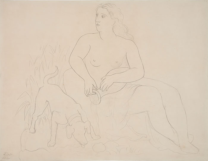 巴勃羅·畢加索,《泉水、女子與狗》,1921年作,鉛筆、牛皮紙,48x63厘米(圖片來自富藝斯)