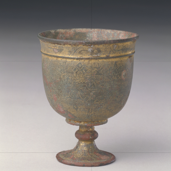 唐代,鎏金刻人馬狩獵紋杯(北京故宮博物院藏)