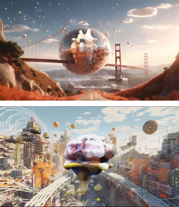 中國美術學院2023年舉辦以“大腦花園”為主題的超維度、超現(xiàn)實大型混合現(xiàn)實展演,圖為展演中《AI花園》影像作品截圖,該作品是一部關于人工智能時代的影像作品,探索人類與技術交織的未來。(圖片源自中國美術學院官網(wǎng))