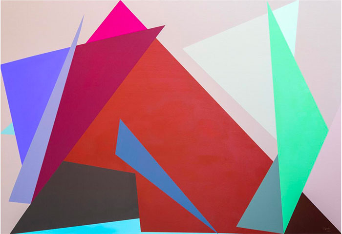 司建偉,《抽象》NO.15,布面亞克力,110×160×4cm,2023年;作品由一張張發(fā)生在我們當下世界的現(xiàn)實照片轉(zhuǎn)換而來,藝術家把照片在計算機中轉(zhuǎn)換出最簡化的圖像,再用畫布和顏料以傳統(tǒng)繪畫的形式呈現(xiàn)出來