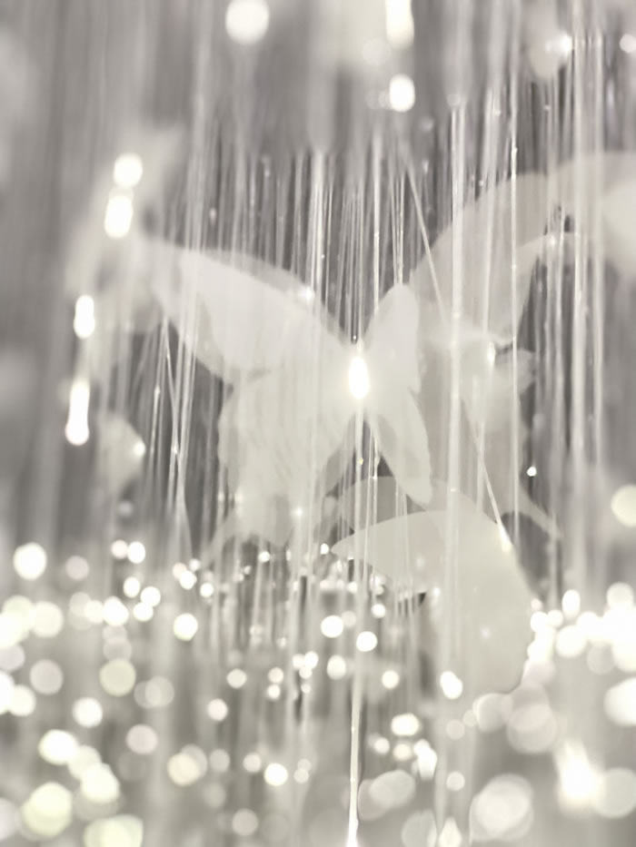 《意識(shí)的蛻變》呼應(yīng)著“莊周夢(mèng)蝶”的哲思。通過懸瓜的蝶翼與殘留體溫的床鋪,挑戰(zhàn)“肉身-意識(shí)”的二元對(duì)立。藝術(shù)家坦言:“每一次入睡都是死亡的預(yù)演——一次超越身體的旅程?!痹谶@里,“空”恰似生死界限的消融。而在這一片如夢(mèng)似幻的晶瑩天地間,夢(mèng)蝶-化蝶,是否也為每位觀者在美好卻脆弱的幻象中營造出一次“意識(shí)蛻變”的內(nèi)觀契機(jī)呢?