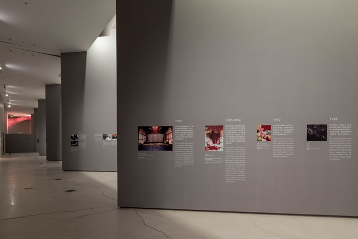 值得一提的是,展覽還通過文獻(xiàn)圖片、影像資料等內(nèi)容系統(tǒng)梳理了鹽田千春的藝術(shù)實(shí)踐與創(chuàng)作歷程——作為日本人,她赴澳洲交換學(xué)習(xí),從此突破對(duì)油畫表達(dá)方式的困境與沮喪,開啟了身體創(chuàng)作的行為之路;后赴德國,師從阿布拉莫維奇與瑞貝卡·霍恩,一步一步走入全球當(dāng)代藝術(shù)視野,走向沉浸式的大型空間裝置。而始終不變的,是藝術(shù)家對(duì)跨國身份的自我認(rèn)同與思考,對(duì)肉身與靈魂、現(xiàn)實(shí)與虛無、生死與永恒的持續(xù)追問。而在這一自我輸出和療愈過程中,鹽田千春也在叩問著觀者: