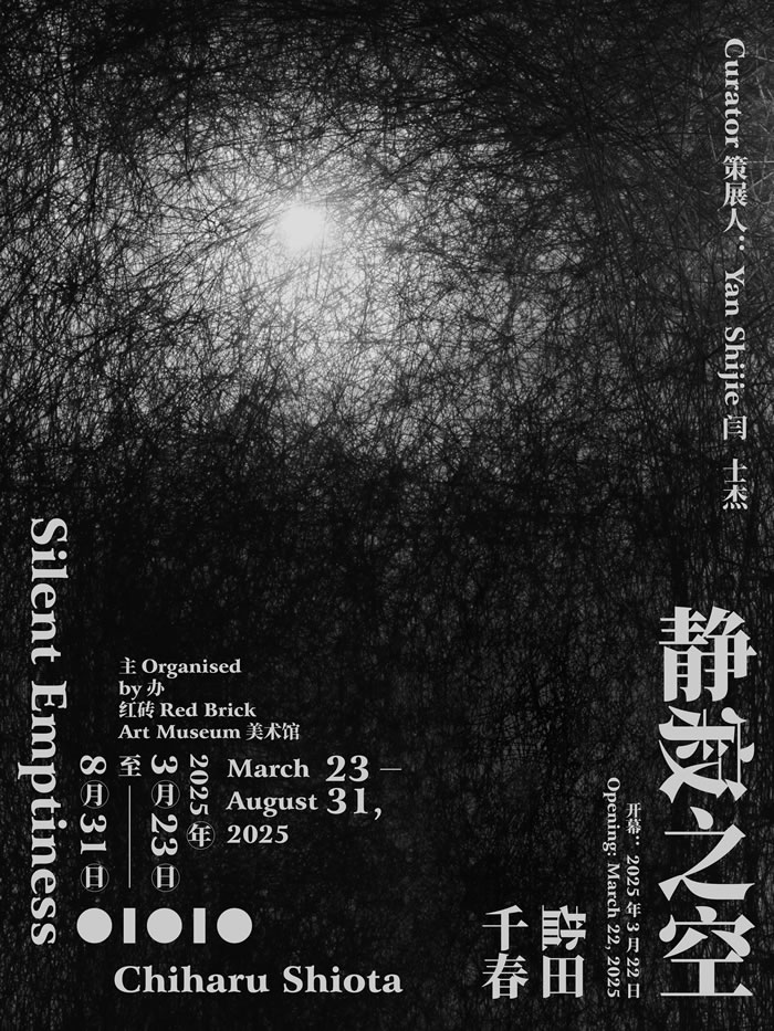 近日,籌備五年之久的鹽田千春(Chiharu Shiota)大型個(gè)展"靜寂之空"(Silent Emptiness)在紅磚美術(shù)館開幕。展覽以"纖維為經(jīng)、舊物為緯",在紅磚美術(shù)館獨(dú)特的"東方園林×西方建筑"空間中,構(gòu)建出物質(zhì)消逝與精神永恒并置的當(dāng)代藝術(shù)樣本。不僅打造出藝術(shù)家職業(yè)生涯中的重要里程碑,更將美術(shù)館轉(zhuǎn)化為一座獨(dú)特的試驗(yàn)場——鹽田千春將藏地古建門庭、河北廢棄木船、北京當(dāng)?shù)氐奶烊欢词凸排f中式家具等與其慣用的紅、黑色線繩在地重構(gòu),將"空"的禪意轉(zhuǎn)化為可觸可感的視覺場域。