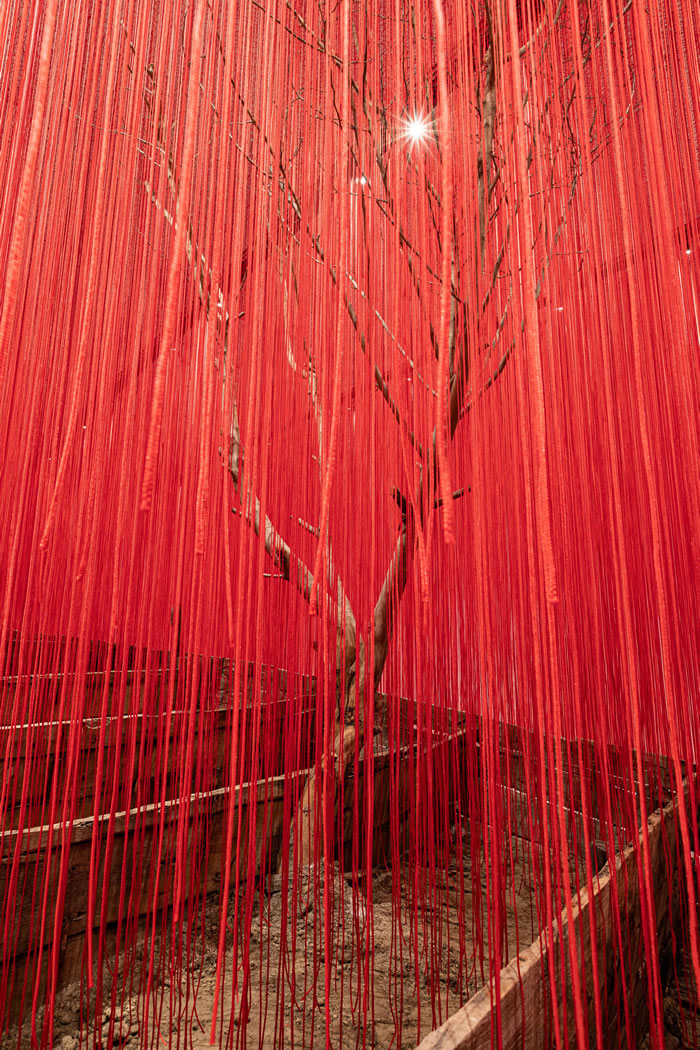 鹽田千春根據(jù)紅磚美術(shù)館的空間與環(huán)境,挖掘并使用東方元素與在地材料,創(chuàng)作了6件全新的特定場域作品。或穿墻而過、或引水成池,或培土榮木、或莊公夢(mèng)蝶……在精心設(shè)計(jì)的觀覽動(dòng)線中,編織出虛實(shí)交織的冥想場域: