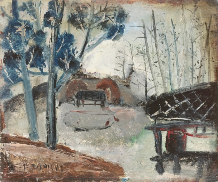 趙無(wú)極,《無(wú)題(寺廟和墳?zāi)梗罚?947年,布面油畫,45.5 × 55 cm,杭州,中國(guó)美術(shù)學(xué)院美術(shù)館藏,弗朗索瓦茲·馬爾凱-趙捐贈(zèng),2024年,圖片來(lái)源:Dennis Bouchard