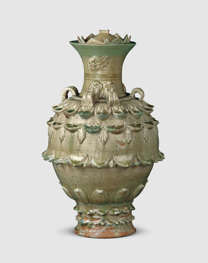 青瓷作為中國(guó)出現(xiàn)最早的瓷器品種,生命力長(zhǎng)久,也承載著審美品位和流行元素的變遷,碩大而不減婀娜的蓮花尊便是例證。生動(dòng)的造型,細(xì)致的紋飾,是技術(shù)的發(fā)展,也是藝術(shù)的創(chuàng)造。