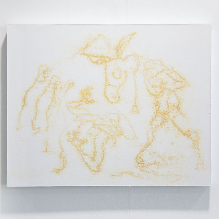 在早期作品中,我們看到“畫什么”對(duì)龔若愚來(lái)說(shuō)似乎還很重要,十年專業(yè)的傳統(tǒng)訓(xùn)練讓他能夠通過(guò)繪畫、拼貼甚至雕塑等多元方式滿足和豐富其作品期望的敘事性。然而個(gè)展“笑點(diǎn)之下”卻給了我們不同的面貌,驢的形象漸漸從畫中隱退,抽離成糾纏的線條,圖像看似隱晦,但繪畫痕跡躍然成為了語(yǔ)言的可視覺(jué)化呈現(xiàn),寓意在其間若隱若現(xiàn)。如果說(shuō)敘事性需要具象來(lái)承載內(nèi)容,那脫離敘事的桎梏,感受力表達(dá)便如同一匹脫韁的野馬。同樣,從受眾角度,過(guò)分寫實(shí)往往容易剝奪觀眾的感受空間,而龔若愚的新作品就如同抽絲剝繭,留給觀者更多想象余地,參與到創(chuàng)作的延續(xù)和發(fā)展中來(lái)。
