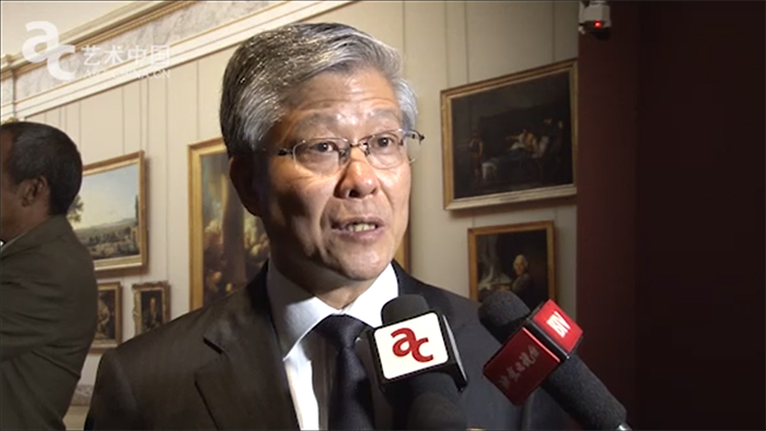 陳履生在“名館?名家?名作——紀(jì)念中法建交五十周年特展”現(xiàn)場(chǎng)接受采訪