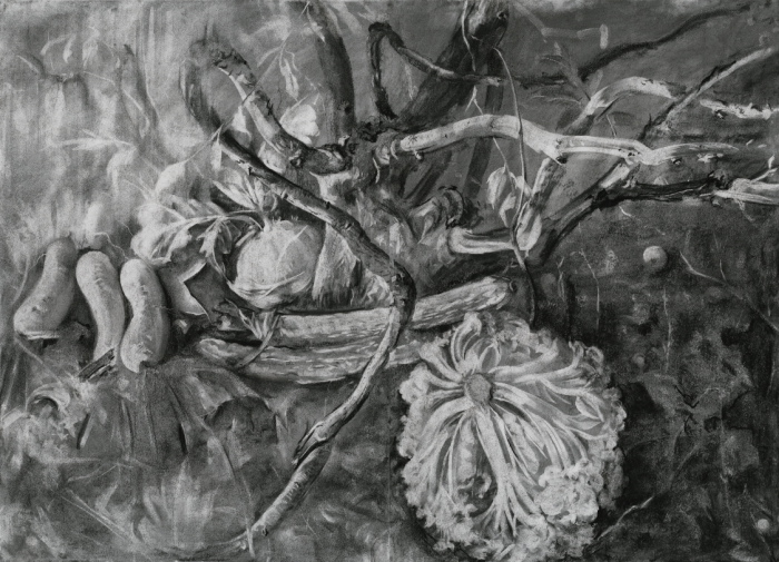 靜物題材本身就有東方意味?!拔铩笔且环N借代、比喻,是中國美學(xué),是欲言又止的表達(dá),是絢爛的沉默。在西方藝術(shù)史中長期被邊緣化的風(fēng)景、靜物,在中國語境下卻顯得非常重要,這種重要性從中國偉大的詩歌傳統(tǒng)中就可以看到。巧合的是,在塞尚、馬奈、梵高那里,風(fēng)景和靜物成了現(xiàn)代主義巨變的標(biāo)志?!皻q寒三友”被中國文人賦予了美好的品質(zhì),中國文化中對(duì)自然的向往,使藝術(shù)家更贊頌“物”的性格與生命力度。