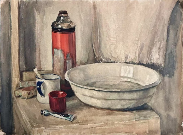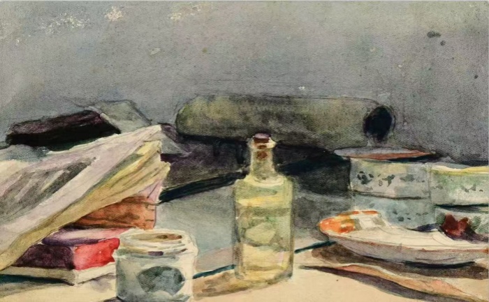 戴澤 中央大學(xué)的課桌上 12×18cm 紙本水彩 1944年