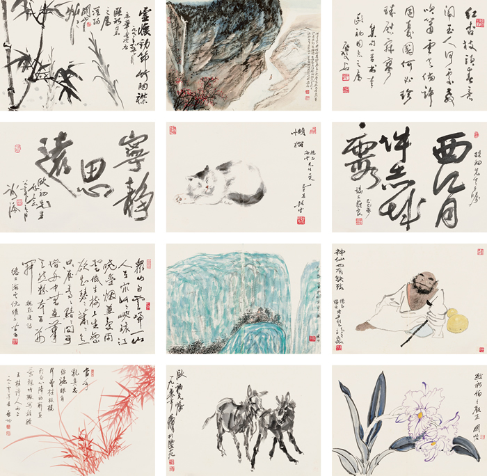 LOT 17 啟功、黃胄、關(guān)山月等 五桂山房集冊 設(shè)色紙本冊頁 44 × 61.5 cm x 12