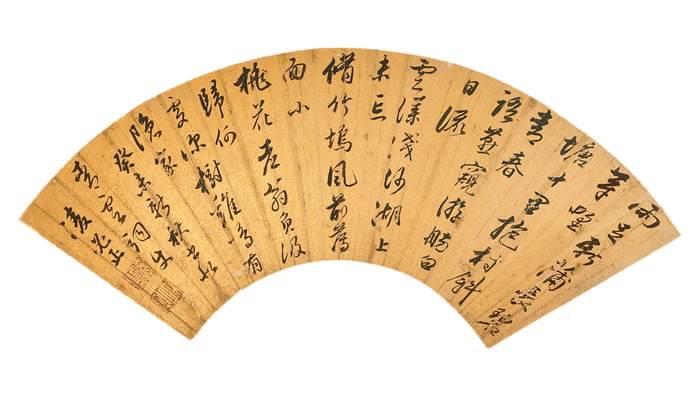 LOT 279 凌必正 行書文征明《郭西閑泛》詩 水墨金箋扇面 16 × 48.2 cm