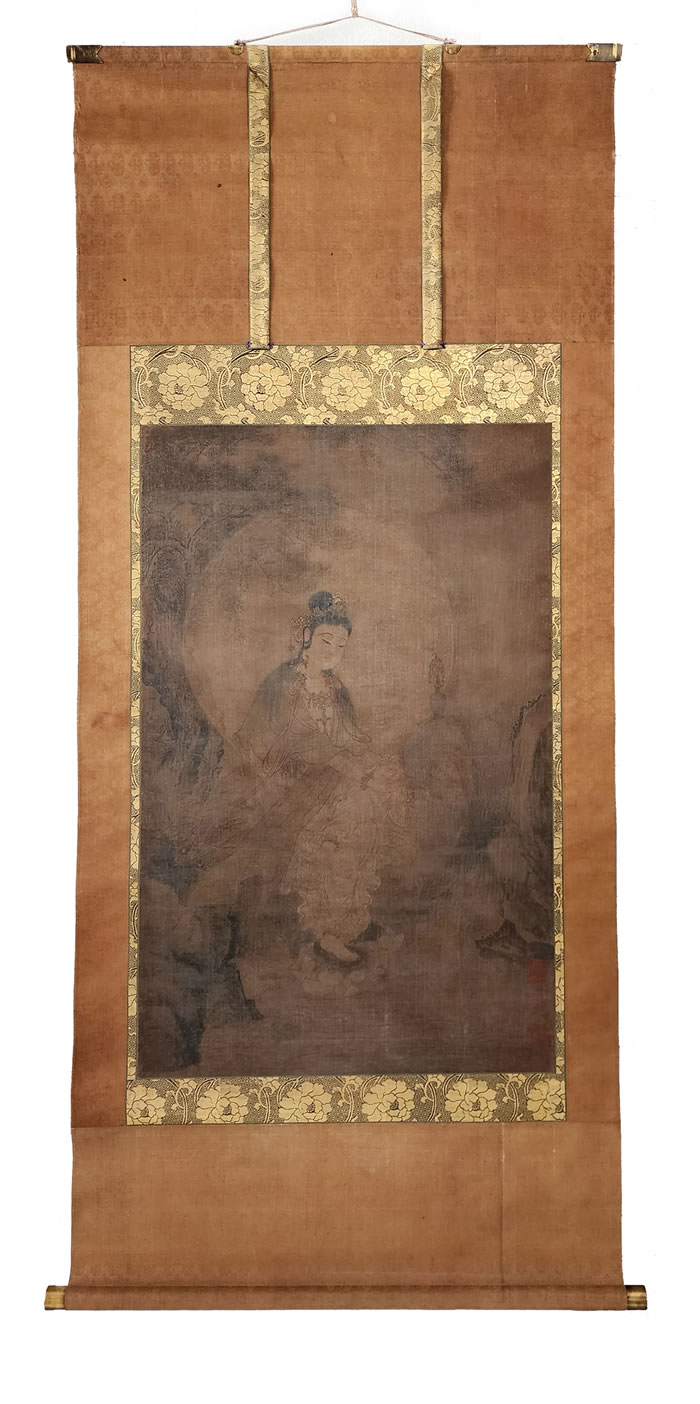 LOT 295 智平(款) 水月觀音 設(shè)色絹本立軸 88 × 56.5 cm