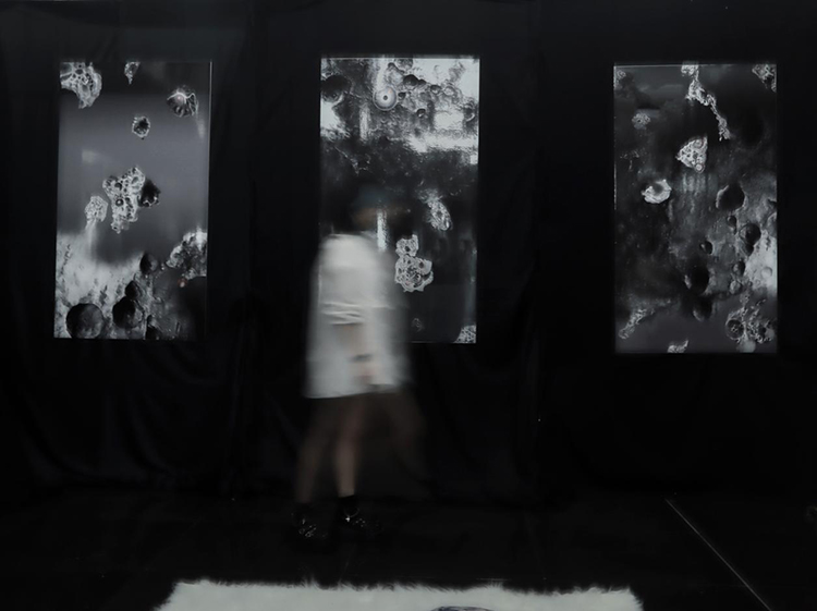 藝術(shù)家張溫吉翔強調(diào),《生命交響的幻象》作品,是一次創(chuàng)意與科學(xué)的交匯,藝術(shù)家通過對月球土壤照片的藝術(shù)加工,探討月壤的重構(gòu)及其變化,以適宜人類生存的概念。該作品中重新詮釋了月球土壤的原始形態(tài),展現(xiàn)了一個既抽象又具象化的重生概念。藝術(shù)家通過血管、細胞體等地球生物的表征形象,融入月壤細胞中,重塑了我們對月球表面的認識。這種創(chuàng)作過程不僅僅是對自然界現(xiàn)象的觀察和記錄,更是一次對于未知領(lǐng)域深入探索的藝術(shù)實踐。