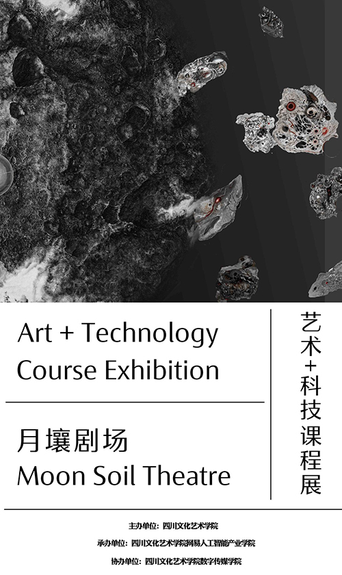 由四川文化藝術(shù)學(xué)院主辦,四川文化藝術(shù)學(xué)院網(wǎng)易人工智能產(chǎn)業(yè)學(xué)院承辦,四川文化藝術(shù)學(xué)院數(shù)字傳媒學(xué)院協(xié)辦的月壤劇場——藝術(shù)+科技課程展,在四川文化藝術(shù)學(xué)院內(nèi)開幕。本次展覽學(xué)術(shù)主持張新,策展人劉沛文、胡明明,執(zhí)行策展人單文博、張潤、黃燕、趙紫晨、方鈺城、張溫吉翔。展覽展出了18件作品,涵蓋當(dāng)代水墨、影像/生成影像、交互裝置多種形式。展覽以中國探月工程獲取的月壤成分數(shù)據(jù)為創(chuàng)作基礎(chǔ),從生命視角出發(fā),探索地月之間潛在的未知生命形態(tài)。從教學(xué)視角,展覽將“未知物質(zhì)—算法隱喻”這一創(chuàng)作方式融入教學(xué)實踐,展現(xiàn)了藝術(shù)與科技交叉領(lǐng)域的教學(xué)探索。