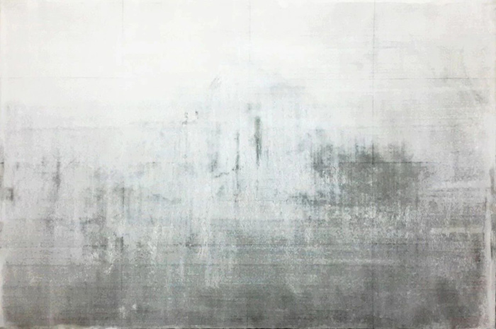 縱覽西方繪畫的發(fā)展,從濕壁畫到油畫,逐步走向直接性與覆蓋性,也就是說藝術(shù)家的技藝試圖從繪畫的基底當(dāng)中脫穎而出,這一脈絡(luò)上演了圖像對起源(基底)的反叛,故而每一筆都是對前一筆俄狄浦斯式的否定(覆蓋)。坦培拉繪畫是其發(fā)展過程中居間一環(huán),該技法在渲染與覆蓋,透明與遮蔽、缺席與在場之間緩慢地揭開圖像的摩耶之幕,譬如張慶國的作品《白氣以和·1》《溪澗·3》《歸山》《霜白山》所示有無之間、而非相抵,正如于連所言:“任何不被缺席所穿透的在場,皆會因其閉塞而暴露出自身的狹隘”,這種“可見與不可見”之間的流變、隱顯所道說的畫與真,在形而上學(xué)層面與中國傳統(tǒng)繪畫別無二致。