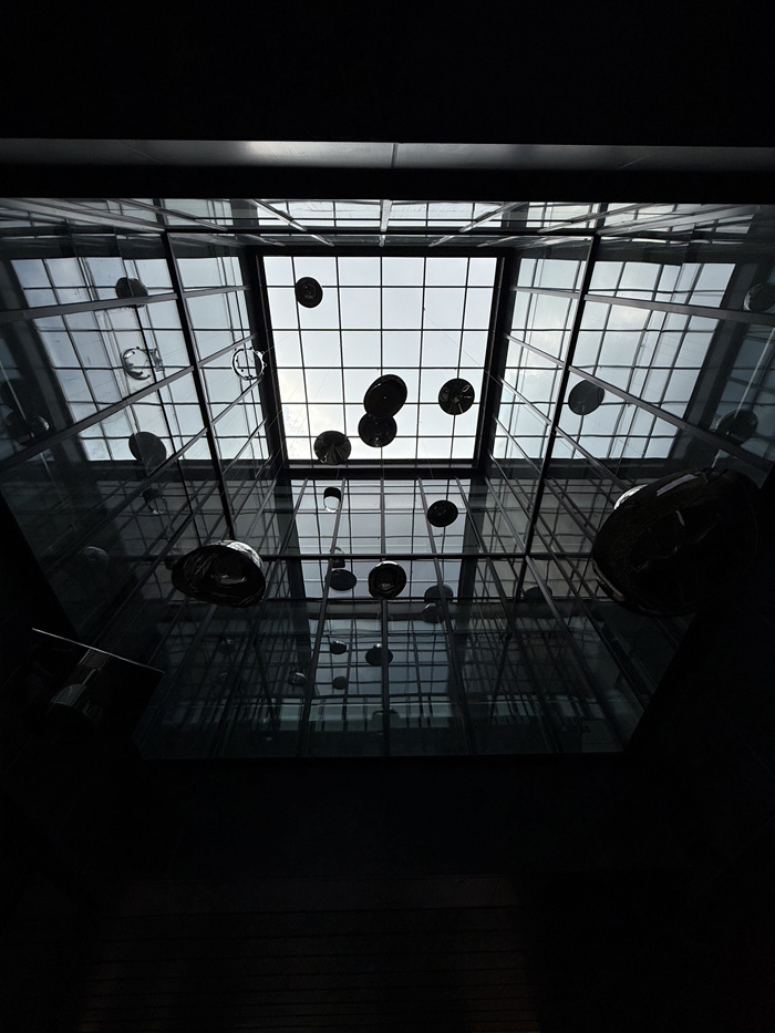 原湖北美術(shù)館館長(zhǎng)、藝術(shù)家傅中望為天美藝術(shù)街區(qū)創(chuàng)作的《中國(guó)帽子》,與它所在的玻璃天井環(huán)境融為一體,呈現(xiàn)出一種超現(xiàn)實(shí)夢(mèng)境,讓人聯(lián)想到馬格里特繪畫里常出現(xiàn)的帽子元素。在他看來(lái),從唐宋到明清,帽子象征著不同的社會(huì)地位,而如今每個(gè)人都在為了未來(lái)努力掙扎奮斗,“帽子”在中國(guó)的現(xiàn)實(shí)社會(huì)當(dāng)中也代表著每個(gè)人的身份和背景。各種帽子具有公共意義,通過(guò)歷代帽飾的演變,象征著來(lái)自不同時(shí)間和空間的人群匯聚一起,在一種自然、和諧、平等的環(huán)境中對(duì)話、交流。