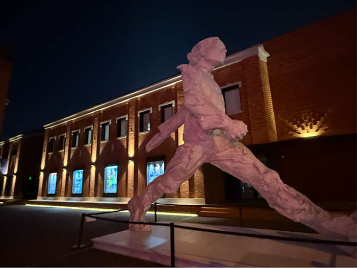 夜色中的《行走的人》與天美藝術(shù)街區(qū)