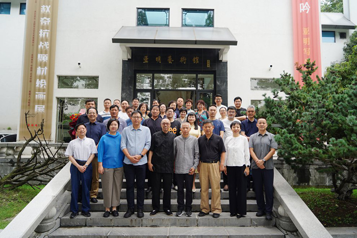 開幕式之后,“烽火史詩——趙奇抗戰(zhàn)題材繪畫展”學術座談會在亞明藝術館舉行。中華世紀壇藝術館藝術總監(jiān)高敬,中國國家畫院副研究員王聰叢,中國畫學會原副會長、安徽書畫院原院長王濤,安徽省美學學會名譽會長陳祥明,安徽省美協(xié)副主席廖新,安徽省書畫院副院長陳明哲等近20位理論學者、藝術家圍繞趙奇抗戰(zhàn)題材繪畫的精神高度與藝術品格、當下主題性美術創(chuàng)作等學術命題進行了交流,座談會由許柏成主持。
