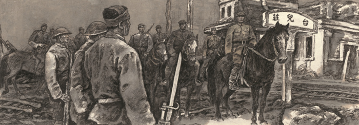 趙奇說“抗戰(zhàn)的歷史在我心中已經(jīng)留下了印象,我總是想通過畫面將那種刻骨銘心的內容表現(xiàn)出來。甚至我畫一片云,我也想使它飄在那個歷史的天空里。”本次展覽是這些連環(huán)畫原作首次與公眾見面,作品寬銀幕式的構圖視角,錚錚鐵骨般的筆墨語言,刀劈斧砍般的線條筆觸,釋放出強烈情感張力與視覺震撼,令人久久不能忘懷。