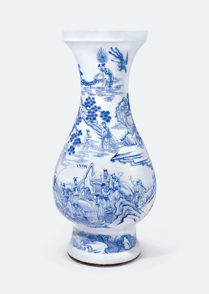 清雍正 青花淡描群仙祝壽圖大琵琶尊