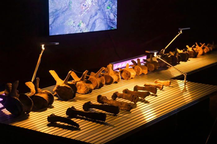 如何在“深時(shí)”中記錄人類文明,打撈生命埋藏的意義及其垂直的想象?由中國美術(shù)學(xué)院劉益紅團(tuán)隊(duì)和中國科學(xué)院團(tuán)隊(duì)聯(lián)合打造的《中國恐龍計(jì)劃|編號20241123》以尤海魯團(tuán)隊(duì)對云南早侏羅世蜥腳型類新標(biāo)本的實(shí)證研究為基礎(chǔ),通過田野尋訪、μCT掃描、地層標(biāo)記、數(shù)值模擬與算法描摹,把古生物學(xué)“硬數(shù)據(jù)”轉(zhuǎn)譯為可感知的“圖像一空間”,經(jīng)由“恐龍”拓維文明尺度、重估人類紀(jì)在生命圖景中的新局面。